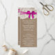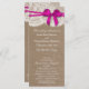 Die rustikale rosa Bogen Hochzeitskollektion ist ein atemberaubendes Design mit einem hübschen rustikalen Burlap-Effekt-Hintergrund mit einem romantischen Vintagen Spitzeneffekt und einem atemberaubenden rosa Bogen. Diese Programme können für Ihren besondere Anlass personalisiert sein und würden die perfekte Vorlage für Hochzeiten, Brautpartys, Verlobungsfeiern, Geburtstagsfeiern und vieles mehr machen. *Bitte beachten Sie, dass Zazzle nur gedruckte Produkte verkauft, sodass dieses Produkt keine echten Bruch-, Spitzen- oder Bänder-/Bogen-Materialien aufweist.