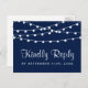 Die schlichte und dennoch elegante Saitenleuchte der marineblauen Hochzeitskollektion ist ein atemberaubendes Design mit hübschen, weißen Hängeleuchten auf marineblau-blauem Hintergrund, das sich perfekt für jede moderne Hochzeitsfeier eignet. Diese UAWG Postkarten können für Ihren besondere Anlass personalisiert sein und würden die perfekte Antwortkarte für Ihre Hochzeit, Brautparty, Verlobungsfeier, Geburtstagsparty und viele weitere besondere Anlässe machen. Fügen Sie diesem Design Ihre benutzerdefinierte Formulierung hinzu, indem Sie die "Diese Vorlage bearbeiten"-Felder auf der rechten Seite des Elements verwenden, oder klicken Sie auf die blaue Schaltfläche "Anpassen", um den Text anzuordnen, die Schriftart und Farben zu ändern und um diesem Design zusätzliche Informationen oder Bilder hinzuzufügen.