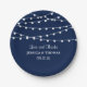 Die schlichte und dennoch elegante Saitenleuchte der marineblauen Hochzeitskollektion ist ein atemberaubendes Design mit hübschen, weißen Hängeleuchten auf marineblau-blauem Hintergrund, das sich perfekt für jede moderne Hochzeitsfeier eignet. Diese Teller können für Ihren besondere Anlass personalisiert sein und würden das perfekte Objekt für jede Hochzeit, Brautparty, Verlobungsfeier, Geburtstagsparty und vieles mehr machen.