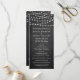 Die schlichte und dennoch elegante Saitenleuchte auf der Chalkboard-Hochzeitskollektion ist ein atemberaubendes Design mit hübschen, weißen Hängeleuchten auf einem Chalkboard-Effekt-Hintergrund, der sich perfekt für jede moderne Hochzeitsfeier eignet. Diese Programme können für Ihren besondere Anlass personalisiert sein und würden die perfekte Reihenfolge für Ihre Hochzeit, Brautparty, Verlobung Party, Geburtstagsparty und viele andere besondere Anlässe machen. Fügen Sie diesem Design Ihre benutzerdefinierte Formulierung hinzu, indem Sie die "Diese Vorlage bearbeiten"-Felder auf der rechten Seite des Elements verwenden, oder klicken Sie auf die blaue Schaltfläche "Anpassen", um den Text anzuordnen, die Schriftart und Farben zu ändern und um diesem Design zusätzliche Informationen oder Bilder hinzuzufügen.