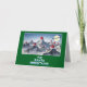 Eine Bergkette trägt Weihnachtsmannmützen. Eine Silhouette des Weihnachtsmannes und seines Schlittens wird im Vollmond am Himmel gesehen.