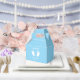 Die schicke Babydusche ist blau und weiß. Geschenkschachtel