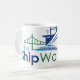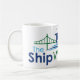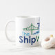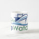 Nippen Sie an Kaffee, während das Aufpassen mit Ihrer neuen Kaffee-Tasse versendet. Diese Tasse kennzeichnet ein großes das Schiffs-Beobachterlogo.