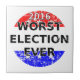 Die schlechtesten Kandidaten aller Zeiten. Kreis in rot, blau und weiß, schwarzer Text mit weißen Konturen. Störungseffekt beim Design.