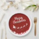 Diese Teller aus der Weihnachtszeit zeigen die Silhouette des Schlittens des Weihnachtsmanns mit seinen Rentieren, die über den Häusern auf einem Sternenpfad fliegen