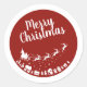 Dieser Weihnachtsrundaufkleber zeigt die Silhouette des Schlittens des Weihnachtsmanns mit seinen Rentieren, die über den Häusern auf einem Sternenpfad fliegen.