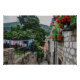 Gemälde von schmalen Gassen mit Gebäude, Blume, Wäscherei und Treppen in der Altstadt, Dubrovnik. Wäscherei aus einer typisch kroatischen Fassade. Schmale Straße mit Gebäude aus weißem Sand.