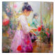 Ein von der KI generiertes Portrait eines Mädchens, das Blume bewundert.