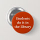Ein orangefarbenes Abzeichen mit weißem Text mit dem Text "Schüler machen es in der Bibliothek". Ich spreche natürlich über Hausaufgaben, was würdest du sonst noch in der Bibliothek machen?