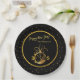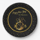 Die Schwarze goldene Uhr jedes Jahres ist glücklic Pappteller