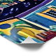 A.I.made print of a star, moonlit night sky zeigt eine schwarze Katze im Vordergrund, Set gegen eine Landschaft von malerischen Dorfhäusern und farbenfrohen Gebäude.