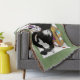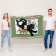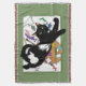 Eine Schwarz-Weiß-Katze liegt mit ihrer Lieblingsmaus auf Leinwand-Papier vor einer grünen Kulisse über Papier, Farbe, Palette, Färbung und Bleistifte