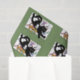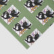 Eine Schwarz-Weiß-Katze liegt mit ihrer Lieblingsmaus auf Leinwand-Papier vor einer grünen Kulisse über Papier, Farbe, Palette, Färbung und Bleistifte