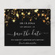 Eine trendige und mädchenhafte Save the Date-Karte für eine 40. Geburtstagsfeier (oder jedes Alter). Ein schwarzer Hintergrund mit goldenen Imitaten. Personalisieren und fügen Sie ein Datum und Name/Alter 40. Der Text: Save the Date ist mit einem großen angesagten, handgeschriebenen Stilskript geschrieben.