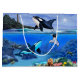 Diese Wale sind glückliche und freie Schwimmen unter dem South- Pacificmeer. Und in einer plötzlichen Explosion von Energie bricht der Papawal die Wellen als ob durch, um vor seiner Schwertwalfamilie vorzuführen.