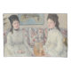 Dieses Design zeigt ein Gemälde des französischen Impressionisten Berthe Morisot (1841-1895). Es zeigt zwei elegante Schwestern, die auf einem Sofa sitzen. Beide Schwestern sehen sich ähnlich: Sie haben ähnliche brünette Frisuren und beide tragen weiße Kleider mit blauen Punkten. Sie tragen schwarze Halsketten im Choker-Stil. Die Damen sind in einem eleganten Wohnzimmer. Die Schwester auf der rechten Seite hält einen Ventilator in der Hand. Das Originalwerk wurde 1869 von Berthe Morisot gemalt.