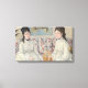 Dieses Design zeigt ein Gemälde des französischen Impressionisten Berthe Morisot (1841-1895). Es zeigt zwei elegante Schwestern, die auf einem Sofa sitzen. Beide Schwestern sehen sich ähnlich: Sie haben ähnliche brünette Frisuren und beide tragen weiße Kleider mit blauen Punkten. Sie tragen schwarze Halsketten im Choker-Stil. Die Damen sind in einem eleganten Wohnzimmer. Die Schwester auf der rechten Seite hält einen Ventilator in der Hand. Das Originalwerk wurde 1869 von Berthe Morisot gemalt.