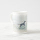 Knochen-China-Tasse mit einer Illustration von Gill Scott namens "Die Schwimmstunde". Aus dem wirklichen Leben gezeichnet, hat ein Mädchen einen Hund am Meeresrand, der versucht, ihn ins Wasser zu ermutigen. Gill ist ein ausgebildeter Künstler und Kunstlehrer und das ist der erste einer Serie.