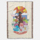 Lithografische Darstellung des Friedensstifters im Retrostil auf einer Wiese mit Taube, Blume und Sonnenschein.