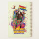 Eine lithographische Darstellung im Retrostil von Harley Quinn, der eine Fahne mit Blume-Explosionen, schweren Regenbögen und farbenfrohen Vögeln hält!