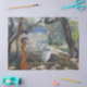 Dieses Design zeigt ein Gemälde des französischen Künstlers Henri Manguin (1874-1949), der mit der fauvistischen Kunstbewegung in Verbindung gebracht wurde. Es zeigt die Ehefrau des Künstlers Jeanne, der als häufiges Modell für seine Gemälde diente. Sie ist auf einem Holzstuhl unter dem Schatten eines Baumes in einem mediterranen Garten zurückgehalten. In der Ferne kann man die Häuser eines Badeortes sehen, neben dem Wasser. Die Frau ist entspannt in ihrer Haltung und sie erscheint in Ruhe, während sie schläft; sie steht dem Betrachter gegenüber. Ihre Augen sind geschlossen und ihre Beine überquert. Sie nimmt eine Erholung von der Mittagssonne und genießt eine typisch europäische Siesta. Die Umgebung um sie herum ist von mediterranem Licht durchflutet, die Lage ist Südfrankreich. Jeanne kann als Symbol für Ruhe, Weiblichkeit und die Freuden eines gemütlichen Zuhause-Lebens gesehen werden. Das Gemälde vermittelt Komfort und Leichtigkeit; es zelebriert die einfachen Freuden des normalen Lebens. Das Originalwerk wurde im selben Jahr gemalt wie der Salon d’Automne von 1905, wo Fauvismus zum ersten Mal in das öffentliche Bewusstsein ausbrach.