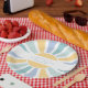 Die sonnengelbe Babydusche kommt hier. Pappteller