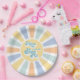 Die sonnengelbe Babydusche kommt hier. Pappteller