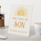 Diese Karten und Geschenke Baby Shower Pedestal Schild verfügt über eine gelbe Aquarell lächelnd Sonne und Terracotta Typografie. Original Wasserfarbe © Michele Davies.
