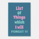 Funny Erinnerung für Vergessliche Menschen Vergessen Sie nicht Post-it Notes mit einem lustigen Erinnerung Zitat - Liste der Dinge, die ich vergesse !!! Hey, vergesslicher Freund! Zeit für eine klebrige Erinnerung, nie vergessen, Ihr Geheimnis gegen Vergesslichkeit: die Post-it notiert! Sie sind wie bunte kleine Erinnerungen, die herumbleiben und sicherstellen, dass Sie keinen Beat verpassen. Wenn Sie also das nächste Mal an diese wichtige Aufgabe denken oder selbst eine unglaublich witzig Notiz verlassen haben, vergessen Sie nicht, sich diese treuen Post-it-Notizen zu holen! Halten Sie es fest, stecken Sie es richtig gut und erobern Sie Vergesslichkeit wie ein Chef!