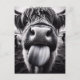 Schicken Sie Lächeln mit unserer schwarz-weißen Postkarte, die eine spielerische Kuh auf der Zunge zeigt. Ideal, um Lachen und herzliche Grüße zu teilen, ist es eine wunderbare Möglichkeit, jemandes Tag mit einer Touch von Launen aufzuheitern.