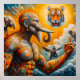 Das Kunstwerk zeigt eine mächtige und mystische Szene, die Elemente von Spiritualität, Mythologie und Natur miteinander verbindet. Die zentrale Figur strahlt ein Gefühl der Gelassenheit und Kraft aus, während die umliegenden Tiere die Aura des Powers und der Mystik verstärken. Zentrale Figur Die zentrale Figur scheint eine Göttin oder Göttin zu sein, mit aufwändigem goldenen Schmuck und einem ruhigen Ausdruck geschmückt. Ihr halb schattiges Gesicht könnte Dualität oder eine Verbindung zwischen verschiedenen Realms symbolisieren. Ihre sanfte Interaktion mit dem Tigerjungen legt Mitgefühl und Harmonie mit