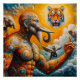 Das Kunstwerk zeigt eine mächtige und mystische Szene, die Elemente von Spiritualität, Mythologie und Natur miteinander verbindet. Die zentrale Figur strahlt ein Gefühl der Gelassenheit und Kraft aus, während die umliegenden Tiere die Aura des Powers und der Mystik verstärken. Zentrale Figur Die zentrale Figur scheint eine Göttin oder Göttin zu sein, mit aufwändigem goldenen Schmuck und einem ruhigen Ausdruck geschmückt. Ihr halb schattiges Gesicht könnte Dualität oder eine Verbindung zwischen verschiedenen Realms symbolisieren. Ihre sanfte Interaktion mit dem Tigerjungen legt Mitgefühl und Harmonie mit