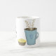 Ein lustiges Sprichwort auf dieser Tasse. Eine große blaue Tasse heißen Kaffees mit einem Muffin daneben. Die Nachricht sagt: "Wenn es um meine Kaffee-Tasse geht, ist die Größe wichtig.
