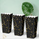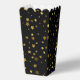 Die Leckerei des Gastgeschenks wird in einem Schwarz-Gold-Sterne-Druck angezeigt. Passen Sie dieses Objekt an oder kaufen Sie, wie es ist. Lizenziertes Bild