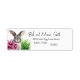 Niedliches, graues und weißes Hasen mit lila und rauschigen Stargazer-Lilien mit einem Haufen Grüngras auf diesen niedlichen Ostermotiven Rücksendeadressen-Aufklebern. Einfach und elegant mit der sonnigen und stargazer lily grafischen und weißen Hintergrund und Schriftart können Sie ändern. Frohe Ostern! Designed by mw1designsart.