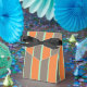 Die Streifen sind grün, grau und orange Geschenkschachtel