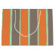 Die Streifen sind grün, grau und orange Große Geschenktüte