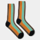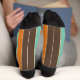 Ein lebendiges Muster mit grünen, schwarzen und orangefarbenen Streifen, das ein dynamisches und auffälliges Design schafft, das naturlich inspirierte Farbtöne mit feinem Kontrast verbindet. Diese markante Farbkombination verleiht Energie und Tiefe.