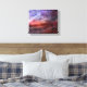 Weiße Fraktal-Muster schwirren vor einem Hintergrund von Orange- und Blautönen, wie der Sonnenaufgang, der durch den Sturm bricht.