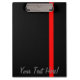 Die symbolische dünne rote Linie auf schwarz Klemmbrett