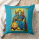 Kissen in einem Tarot-inspiriert Design mit "The Kaiser" sitzend auf einem Thron, gekrönt und in königsblau und rot. Ein mächtiger Löwe sitzt an seiner Seite und symbolisiert Stärke und Autorität. Die Karte symbolisiert Stabilität, Führung und Disziplin.