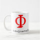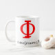 SOCRATES sagte, dass "das ununtersuchte Leben nicht wert das Leben" ist und das um die Basis dieser Tasse, zusammen mit zwei Hauptstadt Phisymbolen, dem ersten Buchstaben des Wortes "Philosophie" und dem Symbol durch Jahrtausende des philosophischen Kampfes geschrieben wird.