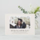 Mit dieser zeitlosen und raffinierten Ankündigungskarte für Abschluss mit einem gerahmten Foto in Form eines Graduierungspapiers verkünden Sie den Meilenstein Ihres Absolventen. Dieses Design ist perfekt für Absolventen der Gymnasialschule oder Uni geeignet und verbindet Eleganz und Personalisierung, um die Leistungen Ihres Schülers zu unterstreichen. Der Name des Absolventen, das Unterrichtsjahr und die Abschlüsse- oder Schulinformationen werden in einem raffinierten Serif-Schriftart für ein formales und berufliches Erscheinungsbild angezeigt. Ideal für den Versand an Freunde, Verwandte und zukünftige Kollegen, ist diese benutzerdefinierte Abschluss-Karte sowohl ein Sake als auch eine Feier.