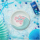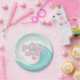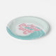 Der große! Surfen Strand 1. Geburtstag Party Teller mit türkisfarbenen Wellen und rosa Schrift.