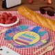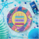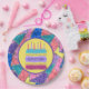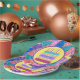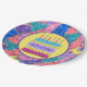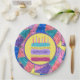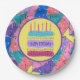 Eine lustige und farbenfrohe Geburtstagspapier-Party-Platte in einem farbenfrohen Retro-Stil