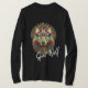 DIE TIER-LANGER HÜLSEN-T - SHIRT DER GEIST-WOLF-TIERmänner, der EINEN ABSTRAKTEN FARBIGEN WOLF MIT EINEM GEBÜRTIGER AMERIKANER-FEDERHEADDRESS KENNZEICHNET.