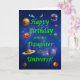 Geben Sie Ihrer weltraumliebenden Tochter die beste Geburtstagskarte aller Zeiten! Sag deiner Tochter, dass er der Beste im Universum ist. Eine Weltraumszene mit allen Planeten und dem Mond, die sich einem glücklichen Geburtstag wünschen.