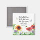 Die treue Liebe des Herrn endet nie. Seine Barmherzigkeit hört nie auf. Dieser schöne Magnet mit rot-gelben Blumen erinnert an Glück. Der Bibelvers ist schwarz.