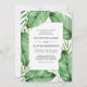 Dieses elegante botanische Design mit seinen tropischen Blätter und Palmenfronten umgibt einen rechteckigen Rahmen mit den Details Ihrer Hochzeit. Es ist eine fantastische Wahl für eine Hochzeit am Strand, Hochzeit in Urlaubsort, Hochzeit oder Hochzeit mit einem tropischen Thema. Personalisieren Sie den Text in der Designvorlage mit Ihren Daten. Sie können den Wortlaut ändern und Textzeilen hinzufügen oder entfernen, wenn dies zum Anzug Ihrer Anforderungen erforderlich ist.