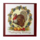 Hübsches, farbiges, Vintages Bild eines Truthühners in einem Kranz, wird auf dieser Keramik Fliesen für den Erntedank Day gezeigt. Die Nachricht auf dieser Kachel lautet: "Erntedank Grüße", als Trivet verwenden oder für die Ferien zu dekorieren. macht auch ein tolles kleines Geschenk!